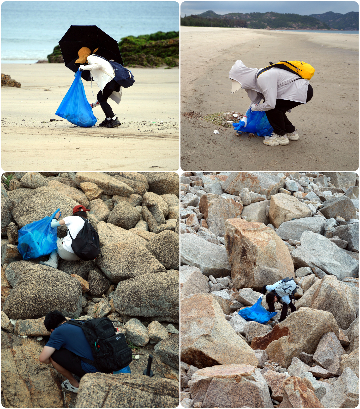 咸台港素以绮丽的海岸风光闻名,但近年来受海洋污染影响,沙滩上随处可见塑料制品、泡沫碎片等垃圾,部分区域还残留燃油污染痕迹。队员们顶着烈日,手持垃圾钳和可降解垃圾袋,细致清理沙滩及礁石缝隙中的各类垃圾。经过数小时的辛勤劳动,队员们“满载而归”,使海岸线重现洁净面貌。